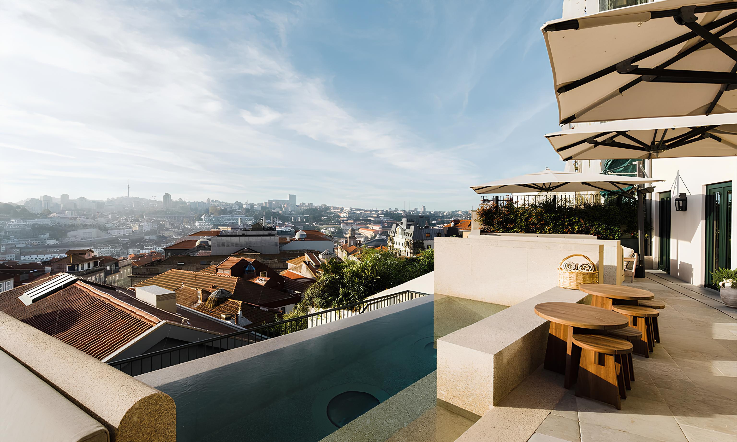 Suites feel calm and timeless, each shaped by history and elevated through design. The Townhouse Duplex offers sweeping views, the Penthouse Suites glow with natural light, and the Flôr Suite is made for intimacy and rest. Some open onto leafy courtyards, others overlook terracotta rooftops, all designed to offer a sense of quiet luxury and belonging. A rooftop pool glimmers above the city, inviting slow afternoons and unhurried moments.