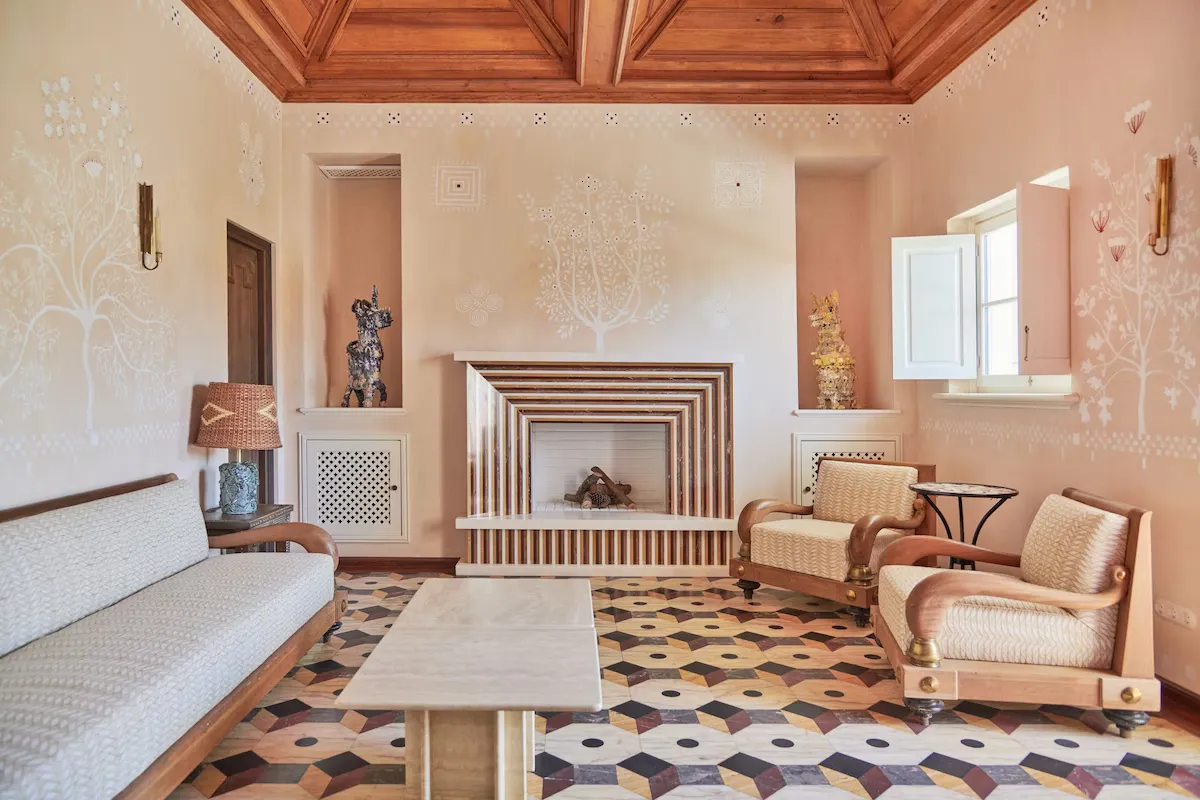 A small hotel wrapped in terracotta floors, handcrafted tiles and warm pigments. The design is intimate and deeply personal, almost like staying in a friend’s artistic home rather than a hotel.