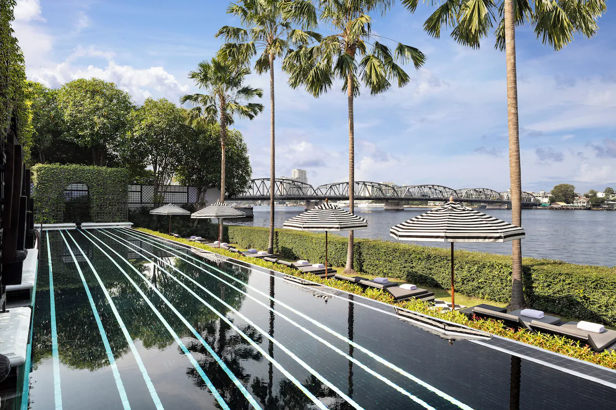 The Siam runs daily yoga and meditation sessions on an outdoor terrace. There is a Muay Thai training centre, a gym that has been used by the Thai royal family, a screening room, a music room (this is a musician's hotel, remember), a library, and an on-site tattoo parlour where staff can arrange sak yant, the sacred geometric tattoo tradition administered by a monk or practitioner. The infinity pool faces the river, flanked by the Bathers' Bar, which is exactly as good as it sounds.